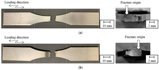 Figure 4 shows the fatigue fracture morphologies for each specimen. The fracture origins of both the base metal specimen and the laser welds are near the specimen surface. The fracture origin of the laser welds is in the area of the base metal at the cross section. This confirms that the Vickers hardness of the welded area is higher than that of the base metal, and that the laser welds used in this study act as successful joints.