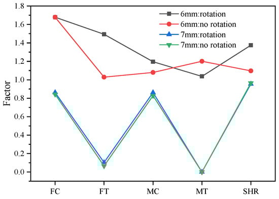 Damage factors under thickness and rotation state.