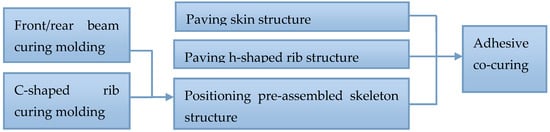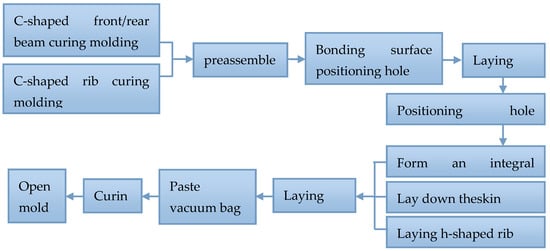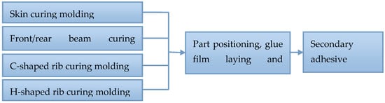 Based on the technical route and process separation surface of adhesive co-curing of composite wing box section, the adhesive co-curing manufacturing process is shown in Figure 8.