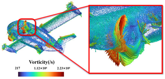 The vortex distribution [Figure 5 and Figure 6] reveals the formation of distinct vortices around the wheels. This is further supported by the pressure distribution map of the tire cross-section, which shows a significant high-pressure zone at the windward position of the front wheel, indicating that it is a major contributor to the overall drag of the flying car.