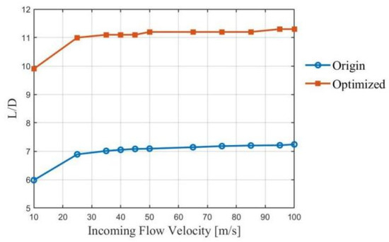 The L/D ratio of the 1:4 model within a range of incoming flow velocities from 25 m/s to 100 m/s is between 6.89 and 7.24. Compared to a helicopter, which has an L/D ratio of 4–5, the flying car exhibits superior aerodynamic efficiency within this velocity range. However, it still shows a significant difference compared to general aviation aircraft, which have an L/D ratio of 10–15.