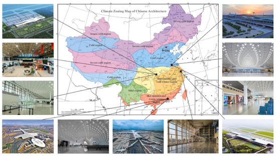 - Yu, J.; Lin, B.; Huang, Y.; Zhao, H.; Zhu, Y. Research and analysis of the energy consumption and indoor environmental quality of China’s terminals. J. Tsinghua Univ. (Nat. Sci. Ed.) 2020, 60, 977–984. [Google Scholar]