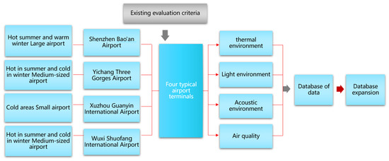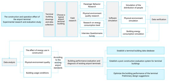 Although research studies and tests of different terminals have been carried out and are available in the existing literature, there is still relatively little systematic research work on the post-evaluation of the airport terminal. In particular, there is a lack of evaluation and research work that takes into account the use of the terminal building, the quality of the physical environment of the building, the energy effect of the building, and the indoor ring. The interaction between environmental factors is still unclear, especially considering the individual differences between different user groups in the airport, and there is still no objective reference basis for environmental operation and maintenance. Therefore, using past experience, this study combines post-evaluation with typical traffic building and terminal architectural design, and establishes a post-evaluation method system and data database of typical airport terminals from multiple comprehensive dimensions, such as spatial characteristics, usage, and the physical environment, and from subjective and objective evaluation.