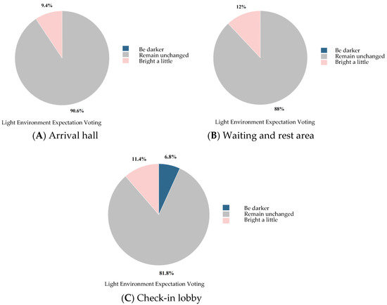 The main information collected includes light environment scoring and voting results on light environment expectations. The following Figure 5 shows the results of the research on the expected lighting environment of the terminal building.