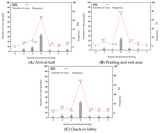 The main information collected includes indoor acoustic environment scoring. The following Figure 6 shows the results of the research on the expected sound environment of the terminal building.