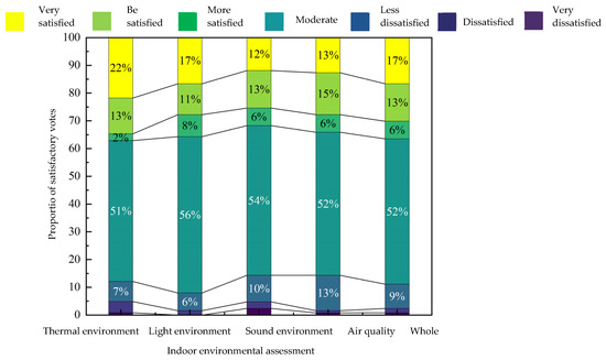 For the statistical results of moderate and varying degrees of satisfaction with the indoor environment, please refer to the table below. On the whole, the result is basically the same as that seen in the physical survey in each region. Figure 8 below shows the analysis of environmental satisfaction. Figure 9 shows satisfaction voting results of each area of the overall indoor environment of the terminal.