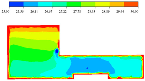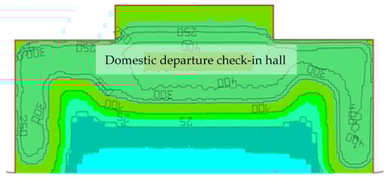 Here shows the temperature distribution in the terminal building. You can see the distribution of different temperature zones in Figure 13.