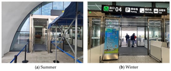 During the normal use of the terminal, in order to facilitate the entry of passengers into the station, the entrance glass door is open for a long time during operation, resulting in serious air penetration. Figure 15 shows the common issues in the usage of the terminal building.