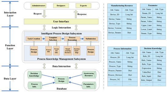 The process design prototype developed in this research adopts Browser–Server architecture. The system is divided into an interaction layer, a function layer, and a data resource layer, as shown in Figure 4.