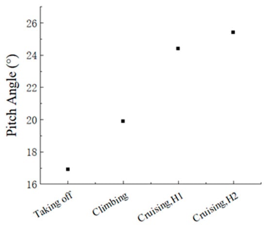 According to the previously designed variable pitch strategy, the propeller pitch angles corresponding to the four design points are shown in Figure 6.
