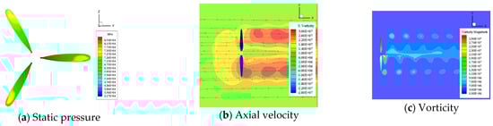 In terms of flow field conditions, including velocity, pressure, and vortex, the designed propeller exhibits better aerodynamic characteristics, which is also reflected in the aerodynamic data.