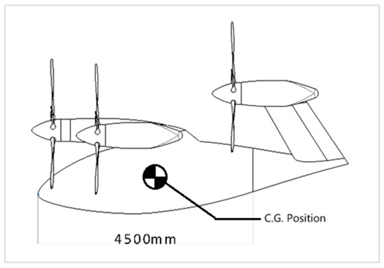 The center of gravity (C.G.) is located at the longitudinal midpoint of the fuselage cabin, as shown in Figure 16.