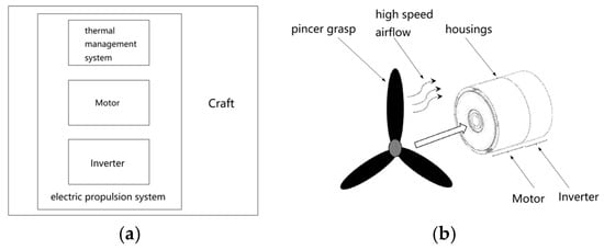 Schematic of Honeywell’s electric propulsion system with integrated thermal management, (a) functional composition, (b) structure.