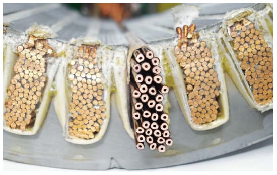 - Ayat, S.; Selgin, C.; Klonowski, T. Electrical Machine Winding Having Improved Cooling. U.S. Patent US12009732B2, 11 June 2024. [Google Scholar]