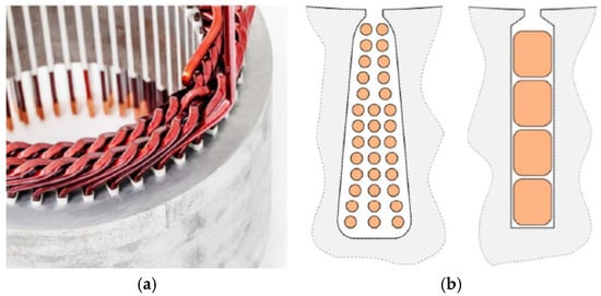 - Berardi, G.; Nategh, S.; Bianchi, N.; Thioliere, Y. A comparison between random and hairpin winding in E-mobility applications. In Proceedings of the IECON 2020 The 46th Annual Conference of the IEEE Industrial Electronics Society, Singapore, 18–21 October 2020; pp. 815–820. [Google Scholar]
