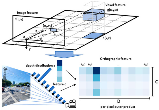 Certain approaches opt to utilize IPM for altering feature maps during the network training phase, as opposed to incorporating IPM in the pre- or post-processing stages. Cam2BEV [40] leverages IPM to convert the feature maps from several onboard cameras into a comprehensive bird’s-eye view (BEV) semantic map. MVNet [41] employs IPM to project 2D features into a unified BEV space, integrating multi-view data and addressing occlusion issues in pedestrian detection with large convolution kernels, whereas 3D LaneNet [42] is designed to forecast the 3D configuration of lanes from a single image without any presumptions about camera elevation. It also trains additional network components under supervision to estimate the homography matrix, subsequently applying projection transformations across various scales of feature maps. Gu et al. [43] implemented 2D detection predictions to refine 3D boundaries globally and introduce corresponding losses to embed geometric constraints between 2D and BEV spaces.