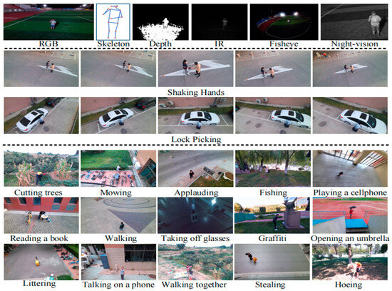 The dataset is large and useful for industry as well. It can be used for motion recognition and posture estimation, allowing for the understanding and parsing of human behavior in drone images, as well as the classification of the meaning of human behavior in images. The dataset comprises 67,428 multi-modal video clips and 119 motion recognition targets, 22,476 frames for estimating postures, 41,290 frames along with 1144 additional frames for re-identifying individuals, and 22,263 frames for recognizing attributes (Figure 8).