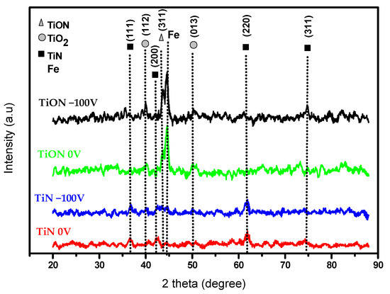 - Azibi, M.; Saoula, N.; Madaoui, N.; Aknouche, H. Effects of nitrogen content on the structural, mechanical, and corrosion properties of ZrN thin films grown on AISI 316L by radiofrequency magnetron sputtering. Cryst. Res. Technol. 2021, 56, 2100096. [Google Scholar] [CrossRef]