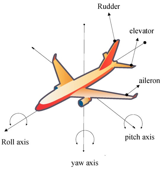 The autopilot mode of operation is vital to an aircraft’s operation. However, this mode requires a smooth and robust controller to overcome sudden obstacles, change the flight’s orientation, or control the attitude of the flight. Normally, the longitudinal attitude control can be carried out along three axes, namely pitch axis, yaw axis, and roll axis. These movements can be obtained by varying the orientations of the ailerons, rudder, and elevators. The elevator controls the pitch axis, the rudder controls the yaw axis, and the aileron controls the roll axis of the flight. The flight model representing the roll axis, pitch axis, yaw axis, ailerons, elevators, and rudder is shown in Figure 1. If the flight must take off, elevators are oriented upward so the lift force is produced under the front part of the flight. This makes the flight move upward. Similarly, if the flight must descend, the elevator must be oriented downward. If the flight must change its path, then the rudder is oriented accordingly. If the flight wants to be rolled right, the right aileron must be oriented downward and the left aileron must be oriented upward. Similarly, for the flight’s left roll, the left aileron must be oriented downward, and the right aileron must be oriented upward. All these orientations are carried out by servo motors and are observed by the gyro sensor. The servo motors, when connected with the ailerons, should work efficiently so that the flight can roll smoothly without any disturbance for the passengers. This process is also applicable to military flights.