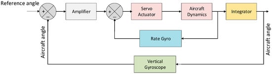 The feedback control model of the aircraft’s attitude control is shown in Figure 2. The transfer functions of aircraft dynamics block A(s) and the servo actuator block S(s) are shown in (1) and (2).