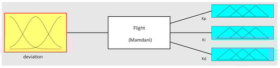AI techniques provide many features such as control design, forecasting, regression analysis, etc. Even though these AI techniques provide better outputs compared to the offline PID tuning method, their efficacy depends on how efficiently the controller is trained. Fuzzy logic is an AI technology used for developing intelligence in control and information systems. Fuzzy logic is a simple system that depends on the degrees of the input and the output states, which hinge on the state of the input and the rate of change in the input state. The working mechanism and input/output of the fuzzy controller are shown in Figure 4 and Figure 5, respectively. This model is trained by using various membership functions. The input is considered as the deviation, and the outputs are PID coefficients. In the fuzzy logic system, the analog inputs are passed to the fuzzifier, which is converted to digital values through a process called fuzzification. This information is processed in the fuzzy inference system via the developed fuzzy rules. This processed information is again converted into analog values by using a process called defuzzification at the output. The Simulink diagram of the Fuzzy PID-based system is shown in Figure 6.