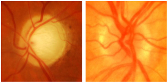 In this work, the ACRIMA [13] fundus image dataset was used, comprising 705 images, including 396 glaucomatous and 309 normal cases, collected from patients at FISABIO Oftalmología Médica in Valencia, Spain. These images, centered on the optic disc and taken after pupil dilation, were captured using a Topcon TRC retinal camera with a 35° visual range. Images with artifacts or poor contrast were discarded. Two glaucoma experts, each with 8 years of experience, annotated images without additional clinical information. Released in March 2019, the ACRIMA dataset is widely used for glaucoma classification tasks, though it lacks optic disc and cup segmentation data. Figure 1 compares the retinal image of an individual diagnosed with glaucoma and that of a normal image.