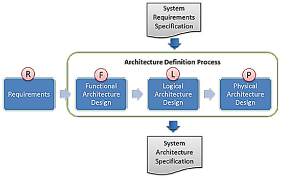 The SE methodology is systematic and generic, enabling its application to a variety of systems. This methodology was utilised to design an effective and efficient architecture for Prognostics and Health Management (PHM) systems [13]. The previous study used the “RFLP” (requirement, functional, logical, and physical) process to define the architecture, as shown in Figure 1, which was developed by incorporating the core principles of SE. Finally, six Dutch water board projects were analysed using the SE process model to improve the efficiency and effectiveness of the civil engineering project all across the board [14].