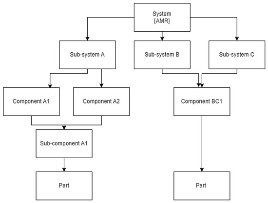The concept development will be performed to provide a final concept design of an AMR for citrus farmers in South Africa. The final concept design will be displayed as a complete structure of an AMR system. An incomplete example of the template can be seen in Figure 3. It illustrates a system as a set of entities that work together to perform a single goal, consisting of various elements with different functions.