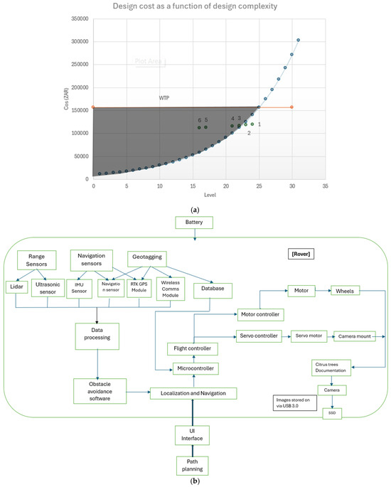 (a) Design option 1 design cost as a function of design complexity; (b) Functional block diagram of the AMR.