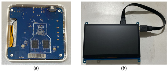 Internal components of the implemented hardware: single-board computer (a) and view of the LCD before being integrated into the case (b).