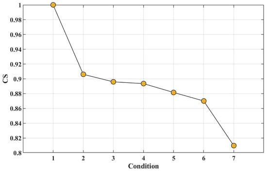 The value of cosine similarity (CS) ranges from −1 to 1. Specifically, a CS value of −1 indicates that two vectors point in opposite directions, while a value of 1 indicates that they are aligned in the same direction. The closer the CS value is to 1, the more similar the vectors are [