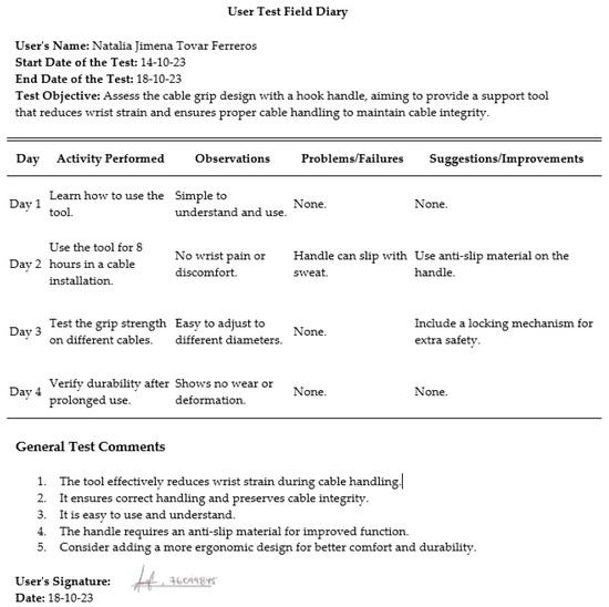 Use-test field diary.