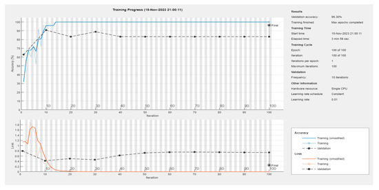 The preprocessing of the images and the implementation of the neural network were carried out in the MATLAB 2023b environment. To train the neural network, the deep learning resource Matlab Toolbox was used, which provides us with an interface and tools for the development of deep learning models. This environment has been selected since it has wide acceptance by the scientific community and the ability to implement deep learning models and algorithms.