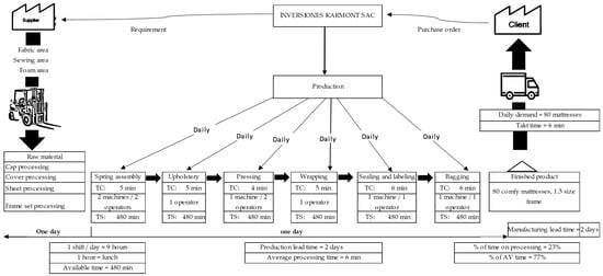 Line balancing according to demand (Tak time) was achieved. To define the Tak time, it was considered that the customer requests include specific characteristics, and therefore, the required quantity was evaluated.