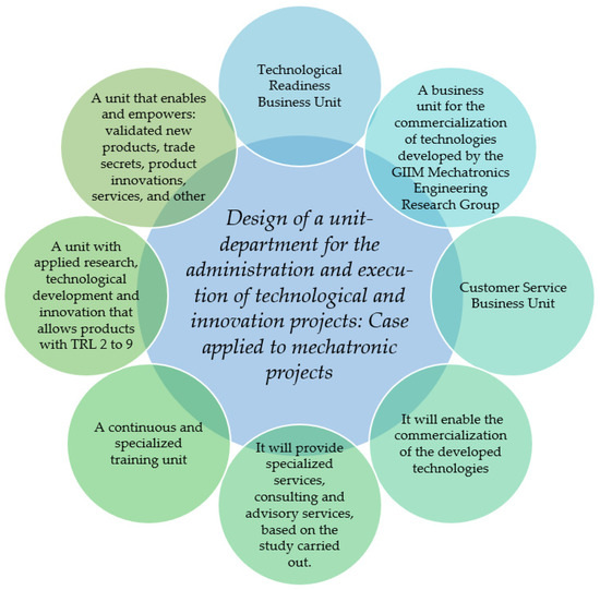 Figure 3. Model for the Unit Department for the Administration and Execution of Technological and Innovation Projects: A Case Applied to Mechatronic Projects.
