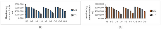 Maximum overturning moment: (a) Maximum overturning moment in X direction; (b) Maximum overturning moment in Y direction.