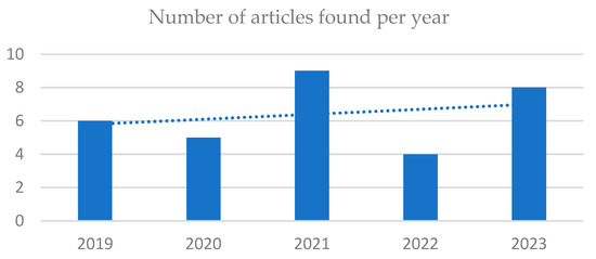 Evolution of articles studied in the present work for each year, selected in the search string.