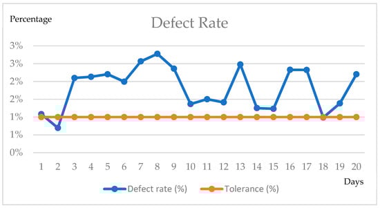 Figure 1, the defect rate surpasses the company’s acceptable thresholds, resulting in non-compliance with established product standards [