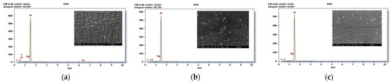 - Scanning Electron Microscope (SEM) and Energy Dispersive Spectroscopy (EDS): Microstructural and elemental analyses were performed using a JEOL JSM-IT500 SEM (JEOL Ltd., Tokyo, Japan). with integrated EDS capabilities. The SEM offers a resolution of 3 nm at 30 kV, which allows for detailed imaging of grain structures and weld interfaces. EDS was used to analyze the elemental composition across the weld zone to confirm the presence and distribution of aluminum and any alloying elements or impurities. SEM–EDS data provided insights into the changes in microstructure and phase distribution induced by different welding parameters and heat treatments.
