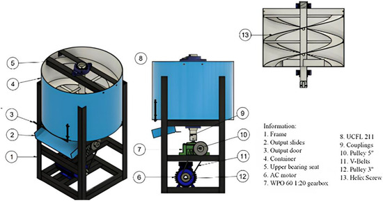 During the mixing machine assembly process, it is imperative to adhere to the procedures, assemble components based on the provided work drawings, and integrate purchased components sequentially (Figure 2). The assembly stages are as follows: