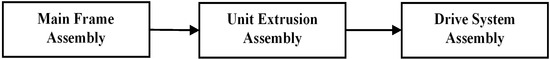 - The drive system assembly stage involves the motor, gearbox, pulley, bearing, and v belt (Figure 3).