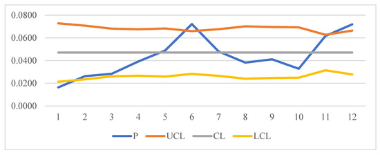 Based on the calculations in Table 2, the P-Chart analysis can be represented graphically, as shown in Figure 3. This chart illustrates the control chart for the period from January 2023 to December 2023.