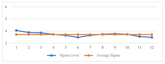 Based on the calculations in Table 3, the DPMO and sigma level results can be graphically represented, as shown in Figure 4 for the DPMO chart and Figure 5 for the sigma level chart, covering the period from January 2023 to December 2023.