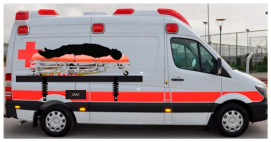 Ambulances play a crucial role in patient transportation and are often subjected to rapid accelerations, decelerations, and maneuvering. Ambulances need to face traffic conditions, road conditions, and obstacles [1,2]. Therefore, ambulances always experience vibrations and unstableness during trips to the hospital. Research has shown that ambulance vibrations and unstableness can negatively impact patient health and hinder paramedic care [3,4]. Patients transported in a recumbent position are more sensitive to vertical vibrations as compared to passengers in standing or seated positions [5]. Although few studies have been carried out analyzing the influence of stretcher stiffness on ride comfort for patients transported by ambulances [5,6], some works have shown that the use of a vibration attenuation system, such as a cabin suspension, can improve ride comfort [7,8,9]. In addition, vibration of the human body is most uncomfortable for sick or injured patients. Various approaches have been explored to mitigate these effects [10]. Research has implemented an artificial neural network controller for active shock absorbers, reducing patient mass vibrations by over 70% [11]. Another study used GAs to search for the optimal value of the damping coefficient and spring coefficient, resulting in a 96% decrease in acceleration on average for patients when driving at 70 km/h [12,13,14]. In other research using GAs to find the best suspension damping can reduce the acceleration of the driver’s seat. [15]. For ambulance stretcher design, GAs were used to determine optimal weighting coefficients for active suspension control, improving ride comfort and stability for patients [16]. The safety of patients’ bodies has been regulated by International Standard Organization (ISO) 2631 [17]. GAs were inspired by genetics from individuals with mutation processes in order to achieve the best genetic [18,19,20]. In this paper, DVA is proposed to reduce the vibration of stretchers in ambulances. The best effect is also supported by GA to find the best parameters, including DVA mass, spring coefficient, damping coefficient, and DVA position.