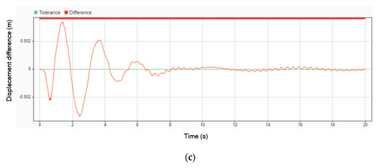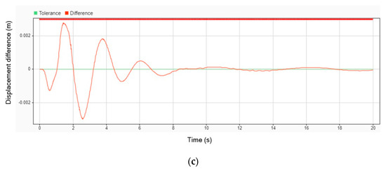 Displacement difference without DVA and with DVA at 50 km/h on (a) head; (b) legs; (c) body.