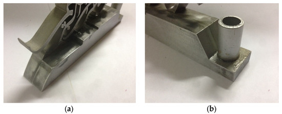 This first product underwent CNC wire cutting due to its specific dimensions being quite small. The smallest distance between profiles in this product was 0.57 mm. CNC wire cutting can only cut two-dimensional products. But the advantage of using this machine is that it can cut the smallest distance with the wire. Other than that, it can also produce a better surface finish. Since BISMILLAH calligraphy has to be produced as a three-dimensional product, another plate of the same size was produced and joined using epoxy, as shown in Figure 2a. This was also done for an aluminum rod, which was joined using epoxy, as shown in Figure 2b. The aluminum rod was used to replace the cylindrical feature. Since the material used for the rod was coated aluminum, it could not undergo welding due to the high temperature of the welding process and the possibility that the aluminum rod could melt. There are also three different sub-parts between the designing product and the machining product, as shown in Table 1.