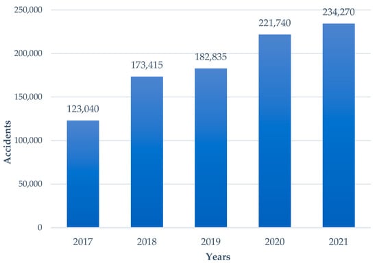 Figure 1. The data show an increase of 5.65% from the previous year, which had 221,740 cases. If we look at the trend, the number of workplace accident cases in Indonesia has continued to grow over the past five years. In 2017, the number of work accidents recorded was 123,040 cases. This number increased by 40.94% to 173,415 cases in 2018. The following year, work accidents rose again by 5.43% to 182,835 cases. Workplace accidents in the country increased by 21.28% to 221,740 cases in 2020. The number also increased again last year. According to BPJS, most of those accidents occurred in the workplace. They most often occur in the morning from 6:00 a.m. to 12:00 p.m.
