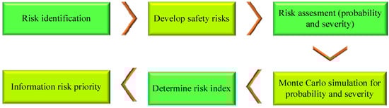 In the Monte Carlo simulation process, random numbers are generated 10,000 times, and these random numbers will be evaluated to obtain the probability and severity values of the risks. The analysis of the risk index calculation for each risk is presented in