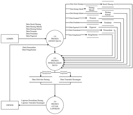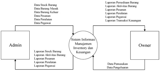 The context diagram describes the outline of the data flow in the system. In this system, there are two entities, namely the owner and admin. The context diagram for this management information system can be seen in the following Figure 1.