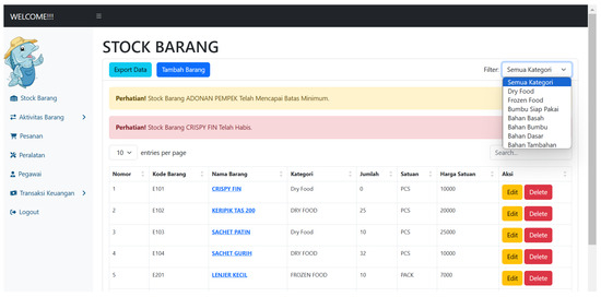 The stock page is a page that displays a table that contains a list of stock products available at MSME Alang-Alang Tumbuh Subur (see Figure 6).